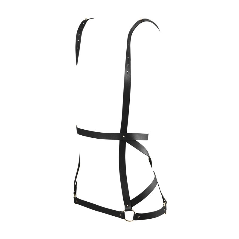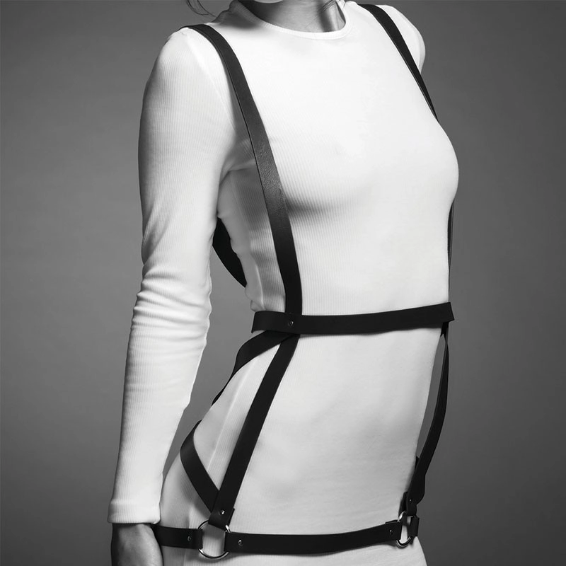 Voici un harnais en forme de robe qui ajoutera une touche audacieuse à vos tenues sexy, votre lingerie fine ou directement sur votre peau nue. Ornez votre corps de vos épaules à vos hanches avec ce harnais BDSM composé de sangles 100% végétaliennes.