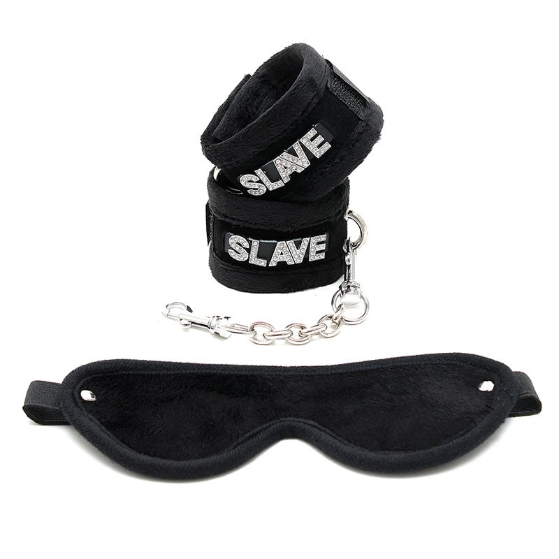 Ces accessoires de bondage sont très doux et très confortables à utiliser. Les menottes sont décorées de petits brillants avec l’inscription SLAVE (esclave)