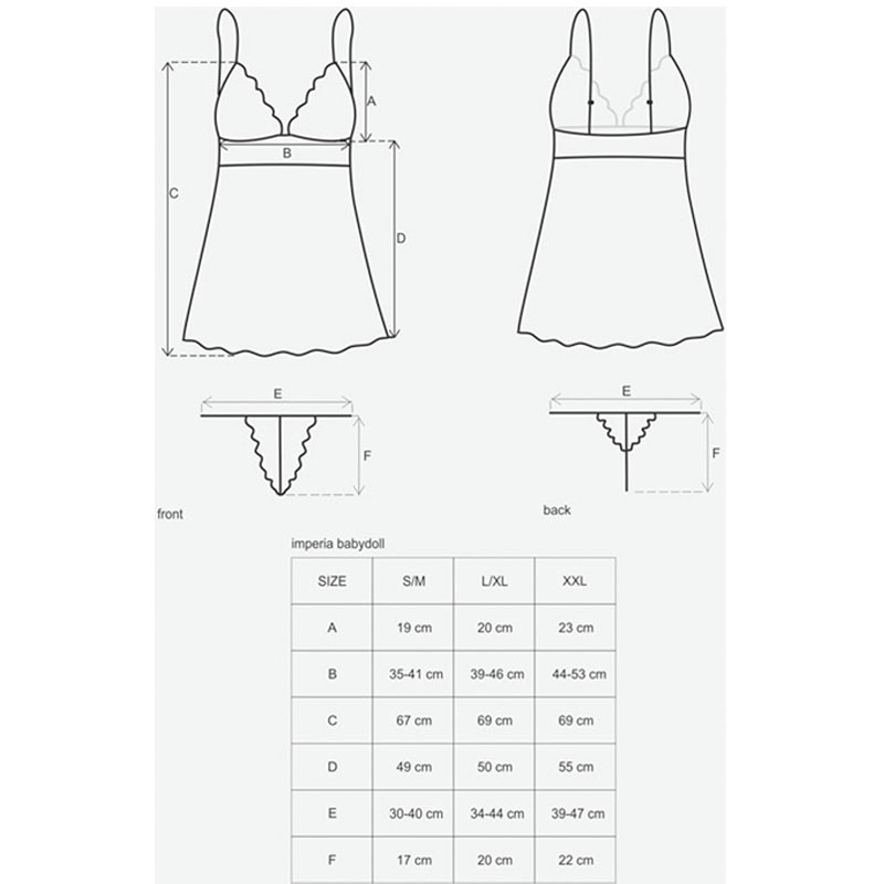 Cette nuisette Idillia de la marque Obsessive offre un parfait mélange de mystère et de tentation avec une dentelle sensuelle qui couvre délicatement la poitrine et une chemise à la coupe évasée qui couvre les imperfections du corps.