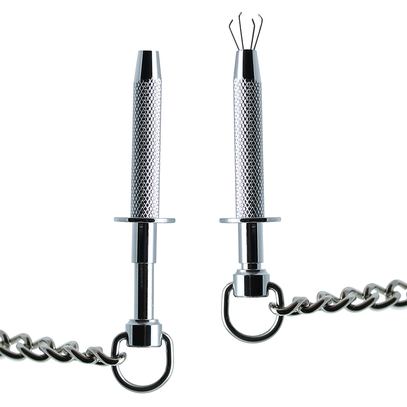 En effet, ces pinces à tétons métalliques disposent d’un système ingénieux qui fera sortir 4 petites griffes du cylindre dès que vous appuierez sur son extrémité.