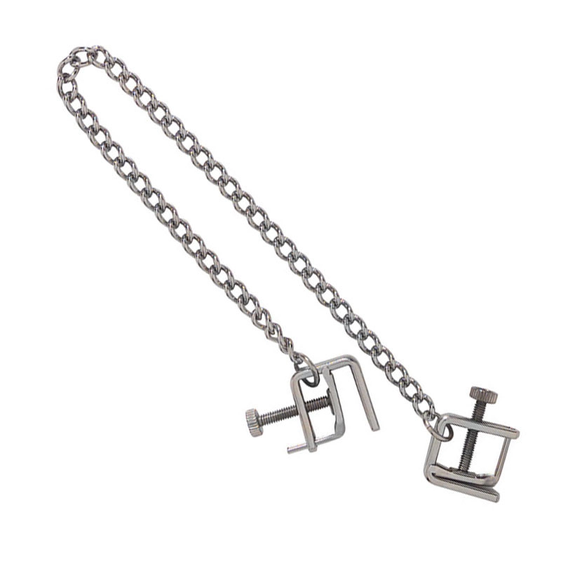 Pinces à tétons « Press » : une paire de pinces à seins reliées entre elles par une chaînette pour aller toujours plus loin dans vos jeux SM !