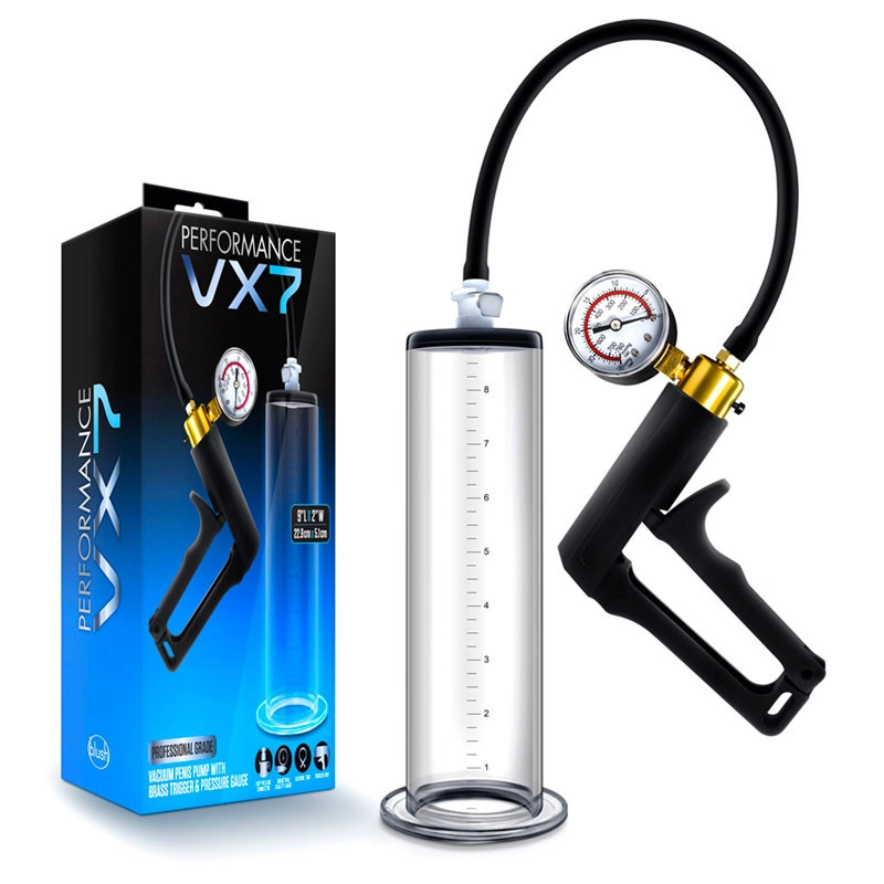 Pour de meilleurs résultats, la pompe à pénis Blush Novelties Performance VX7 peut s’utiliser avec une crème érectile favorisant l’afflux sanguin dans le pénis.