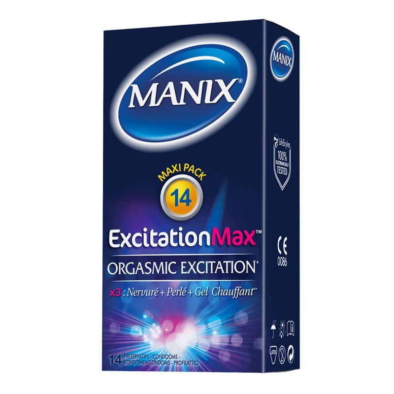 Manix Excitation Max : les préservatifs qui grâce à leurs triples stimulations, vous procureront à vous et votre partenaire encore plus d’excitation pour toujours plus de plaisir !!!