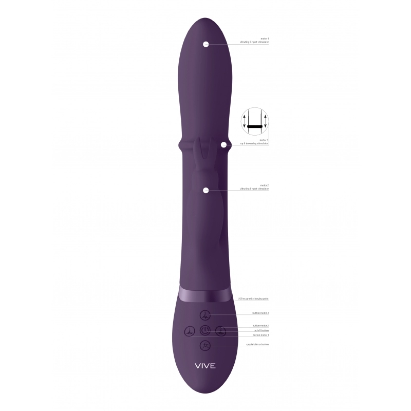 En effet, ce vibrateur de type lapin possède un anneau stimulant intégré dans son axe lisse en silicone de qualité médicale, et celui-ci se déplace de haut en bas pour un massage « interne » comme aucun autre.